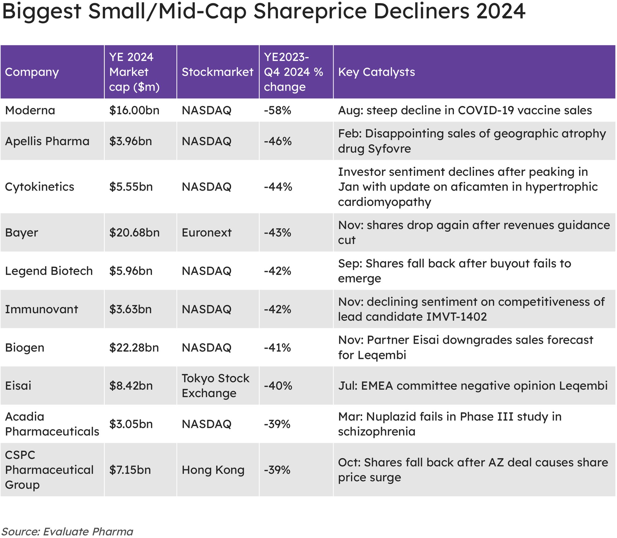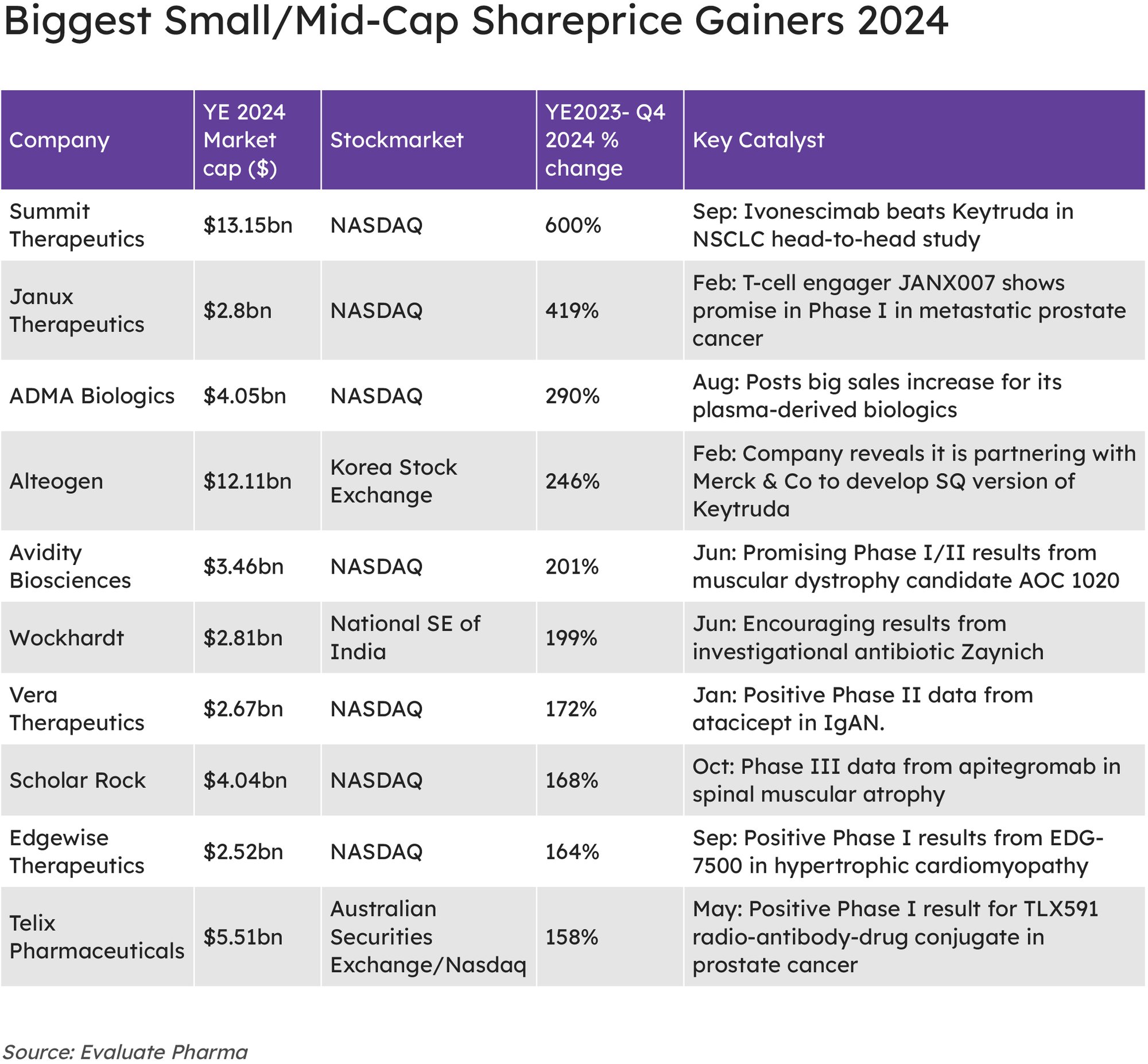 Mid-Cap Biopharma’s Biggest Winners And Losers Of 2024