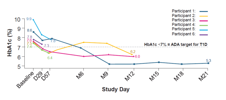 The most exciting finding from ADA was that the two patients followed for one year or longer became insulin independent. They also met the primary endpoint, elimination of severe hypoglycaemic events between day 90 and month 12, with HbA1c levels of less than 7%.