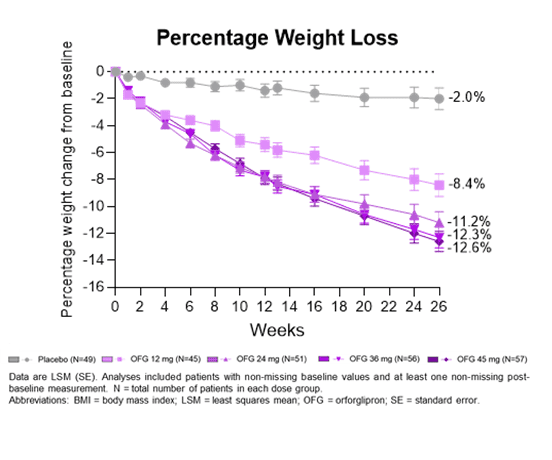 Weight loss with Lilly's orforglipron in phase 2