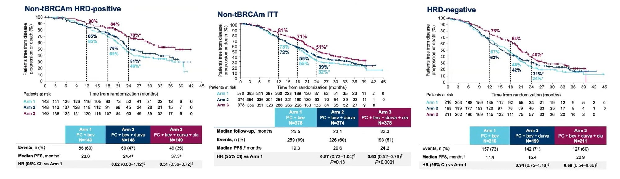 The good news is that the Avastin/Imfinzi/Lynparza maintenance triplet met both co-primaries, with p<0.0001. The bad that Avastin/Imfinzi had no advantage over control at all.
