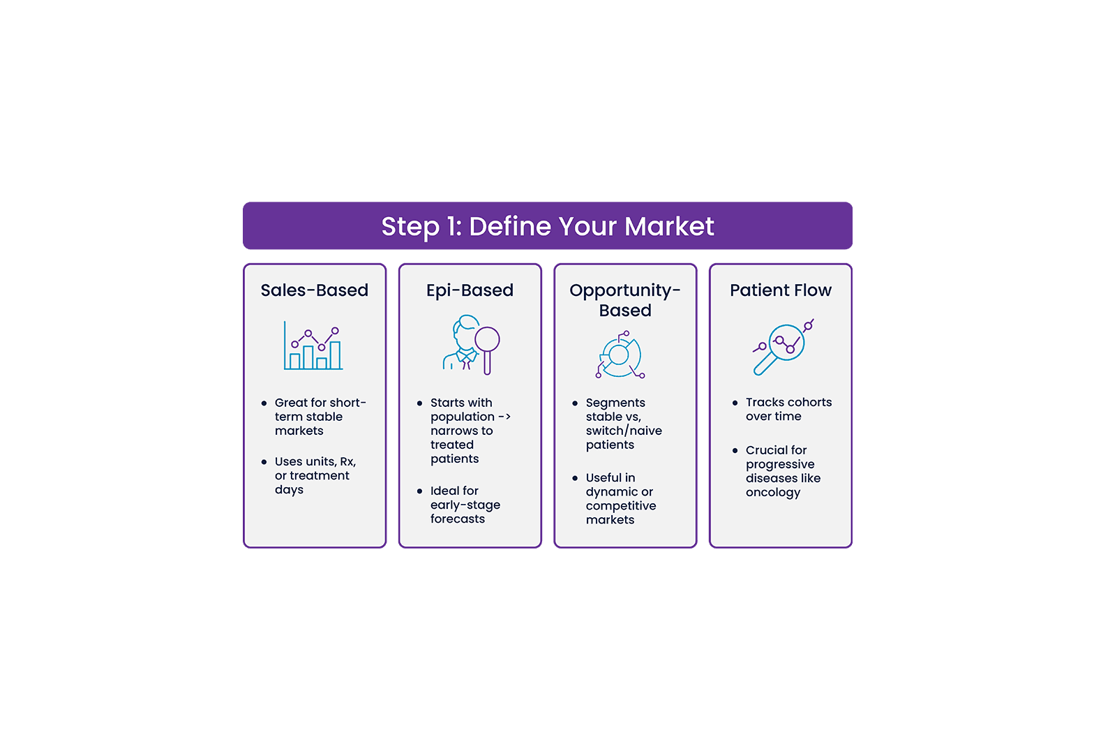 Market definition is the cornerstone of any pharmaceutical forecast. Depending on the type of product and market maturity, there are four primary methodologies: