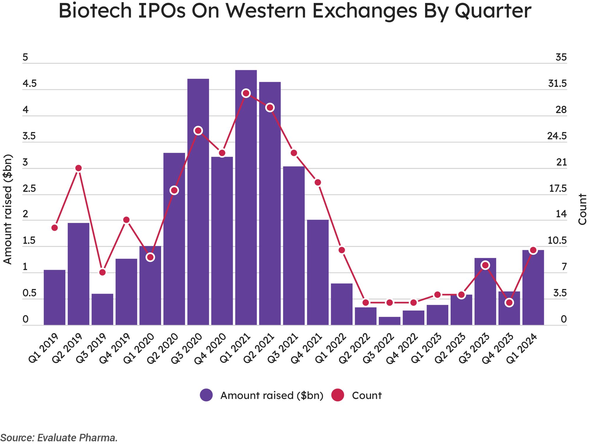 It is too early to say that biotech IPOs are back. But the showing in the first quarter of this year is cheering: more flotations got away since the first quarter of 2022, according to Evaluate Pharma, and more money was raised since the period before that.