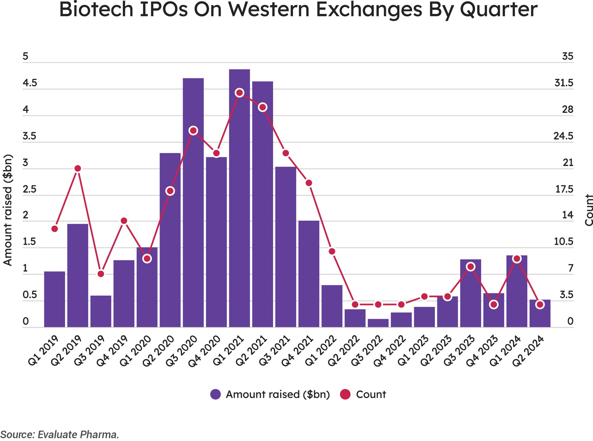 Just three biotechs floated on Western exchanges in Q2 2024.