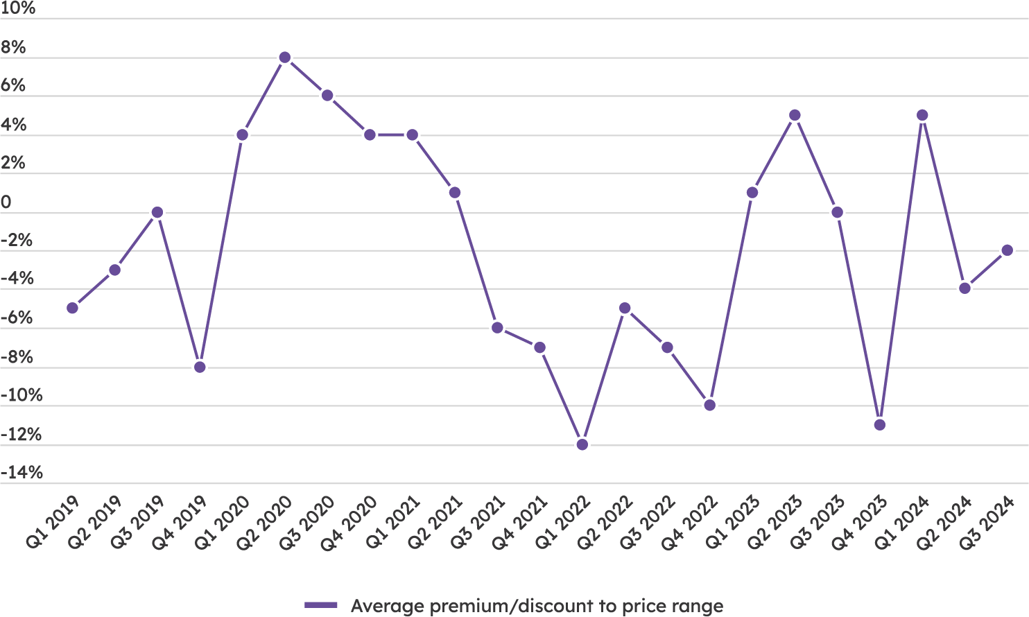 That said, investors’ eagerness for new offerings can be gauged to some degree through the premiums at which floating companies feel able to price, and the trend here still makes for uncomfortable reading. Actuate Therapeutics, Inc. was forced to price its offering at an 11% discount to its preannounced range, dragging the average for the quarter down to a 2% overall discount. The IPO window can only truly be said to have opened when this figure climbs well into the positive.