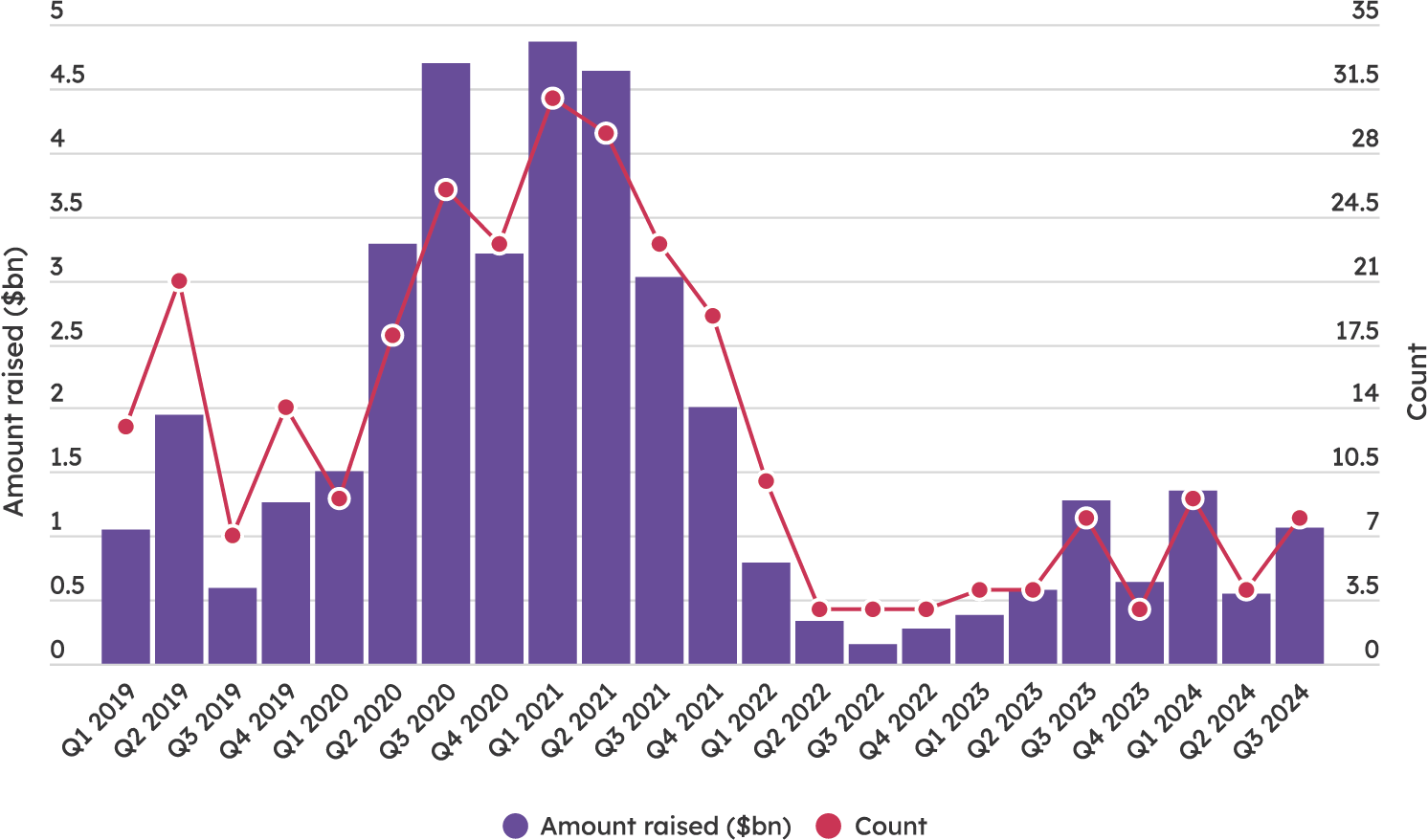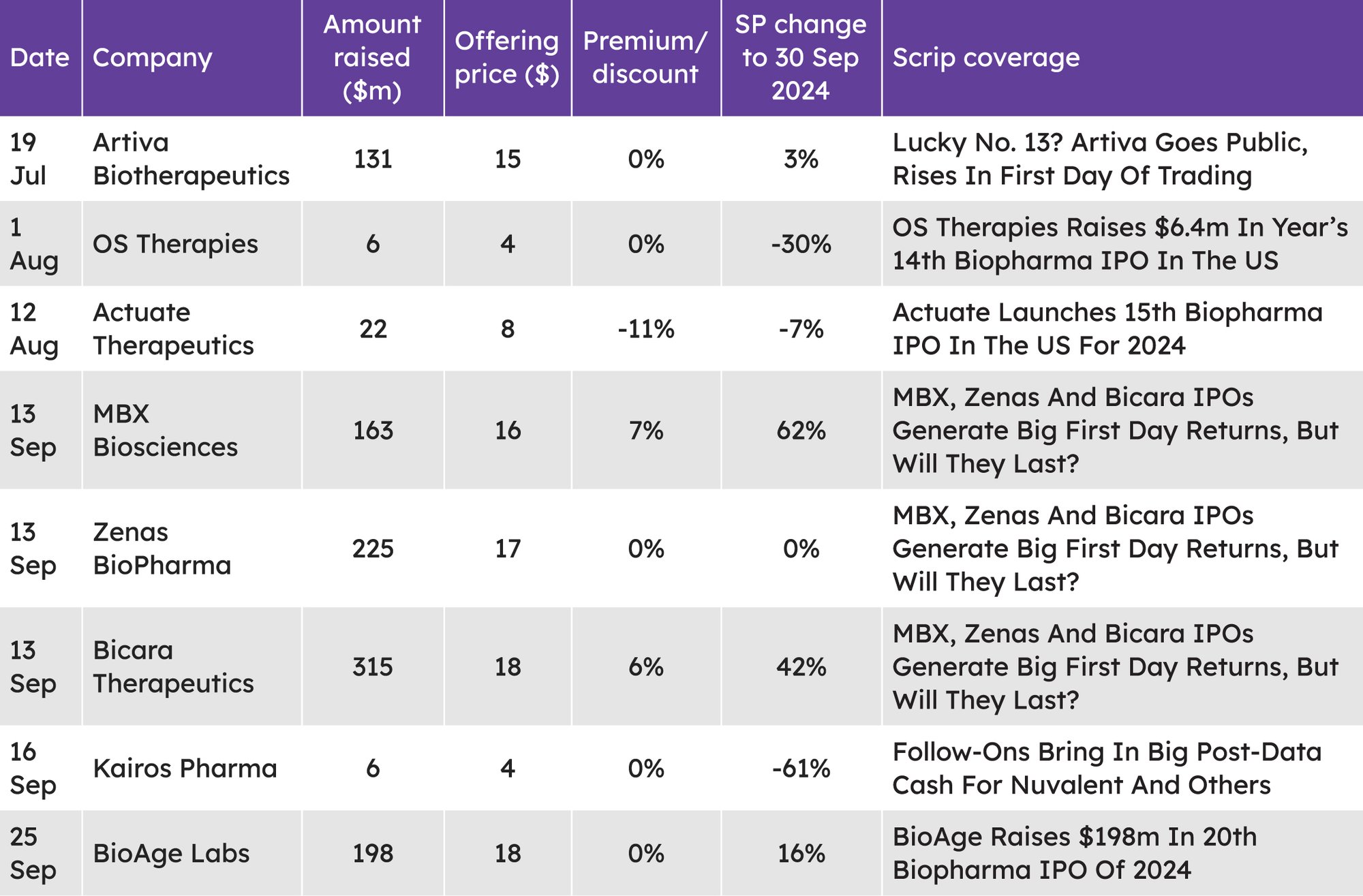 Eight biotech companies went public on Western exchanges in Q3 2024, raising $1.1bn in total.