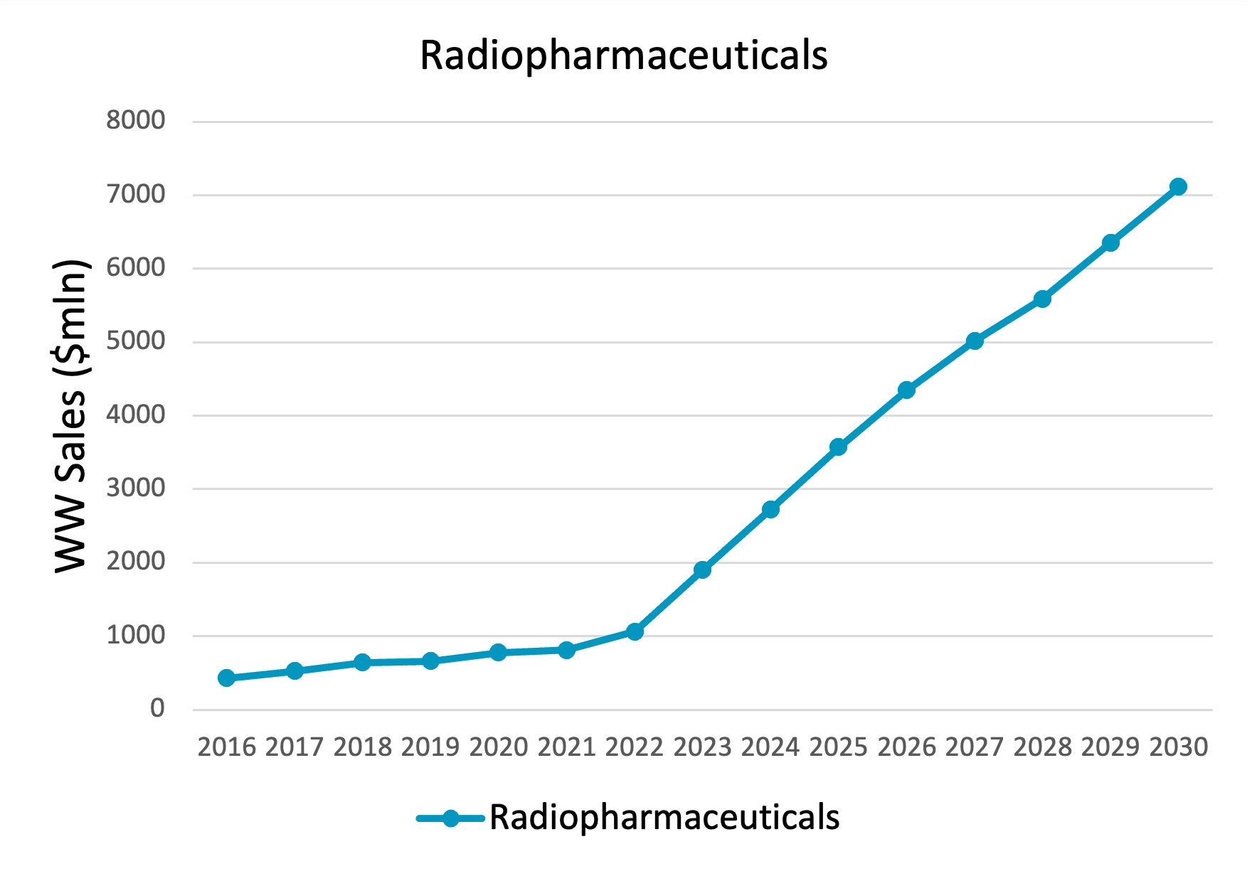 The rapid growth of non-conventional modalities like radiopharmaceuticals, multi-specific antibodies or cell and gene therapies helps explain why worldwide shares of biotechnology versus small molecule/ conventional drug sales continue to converge toward 50/50.